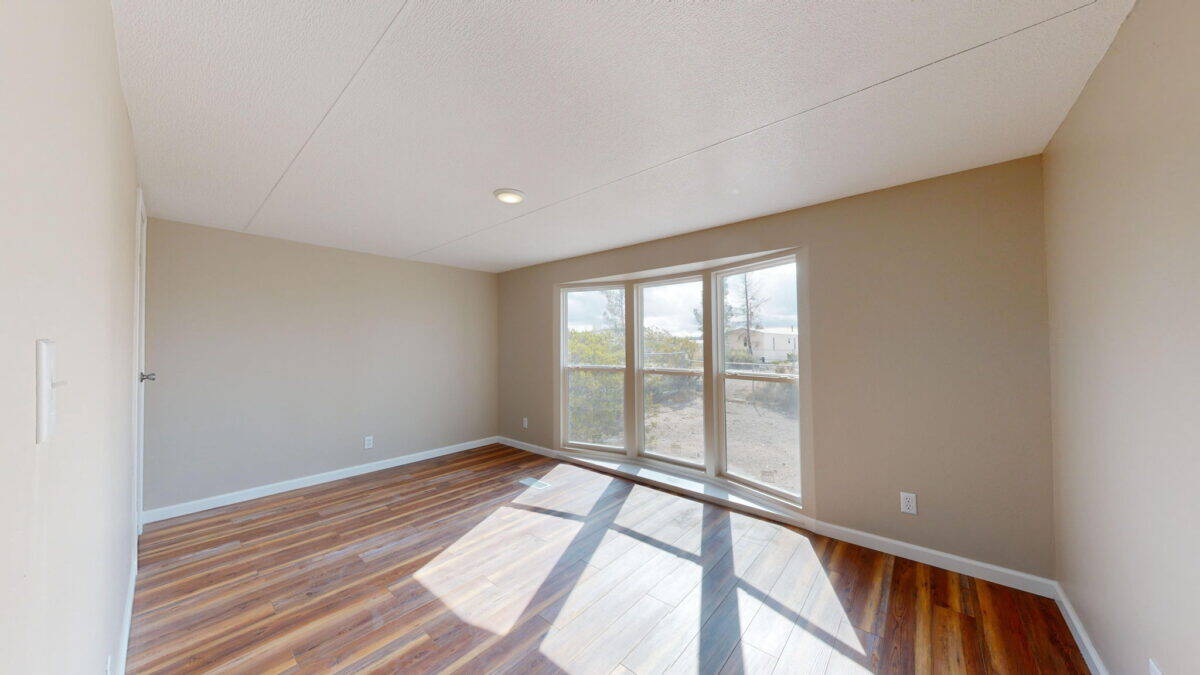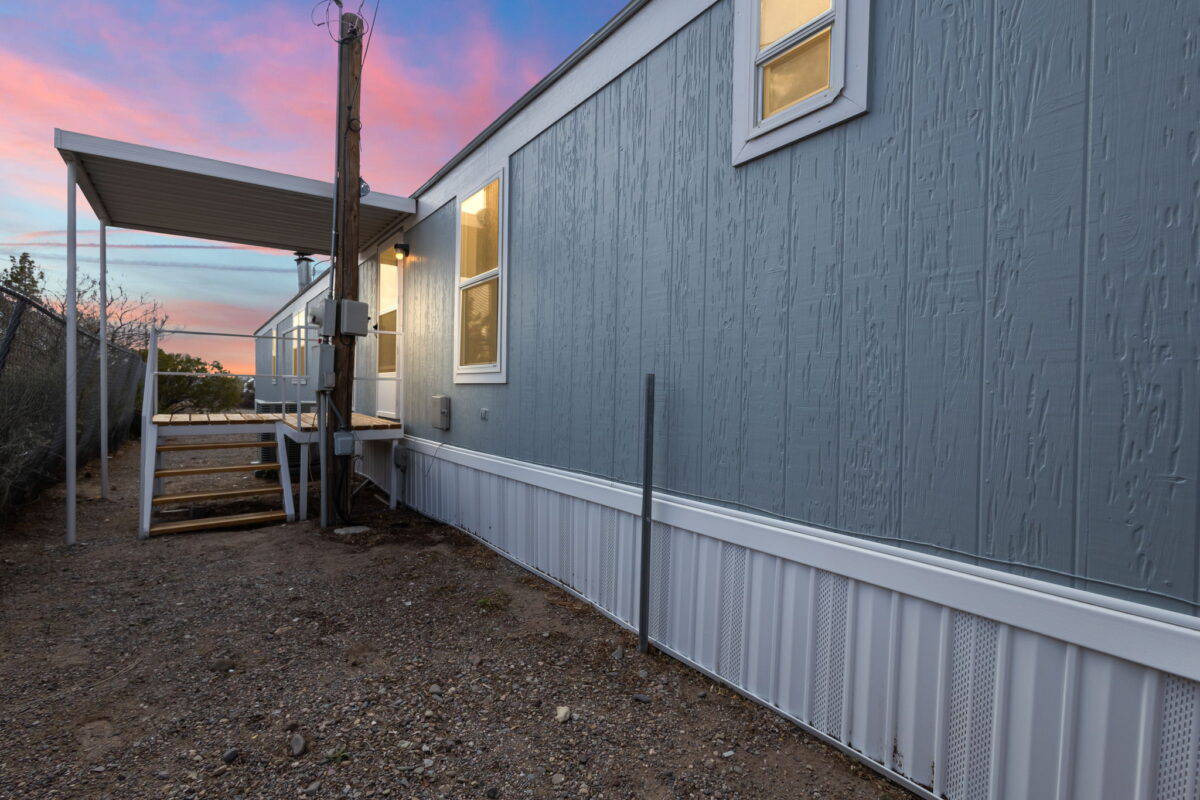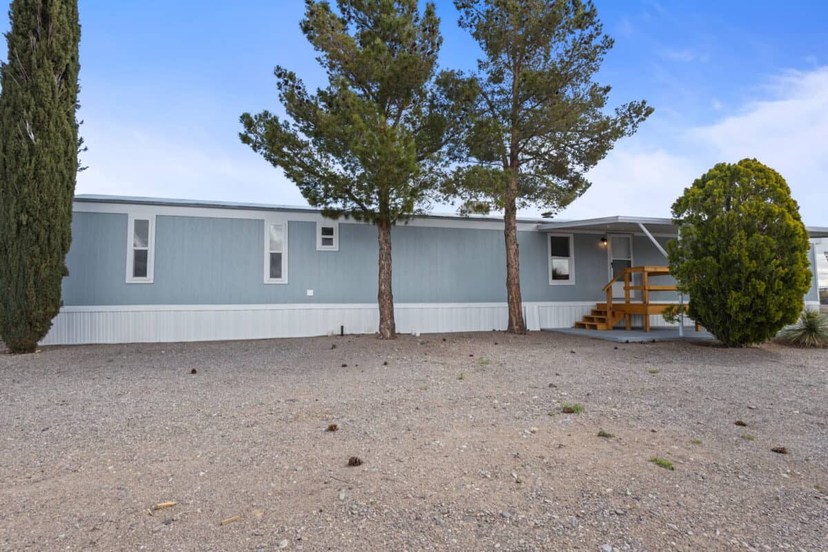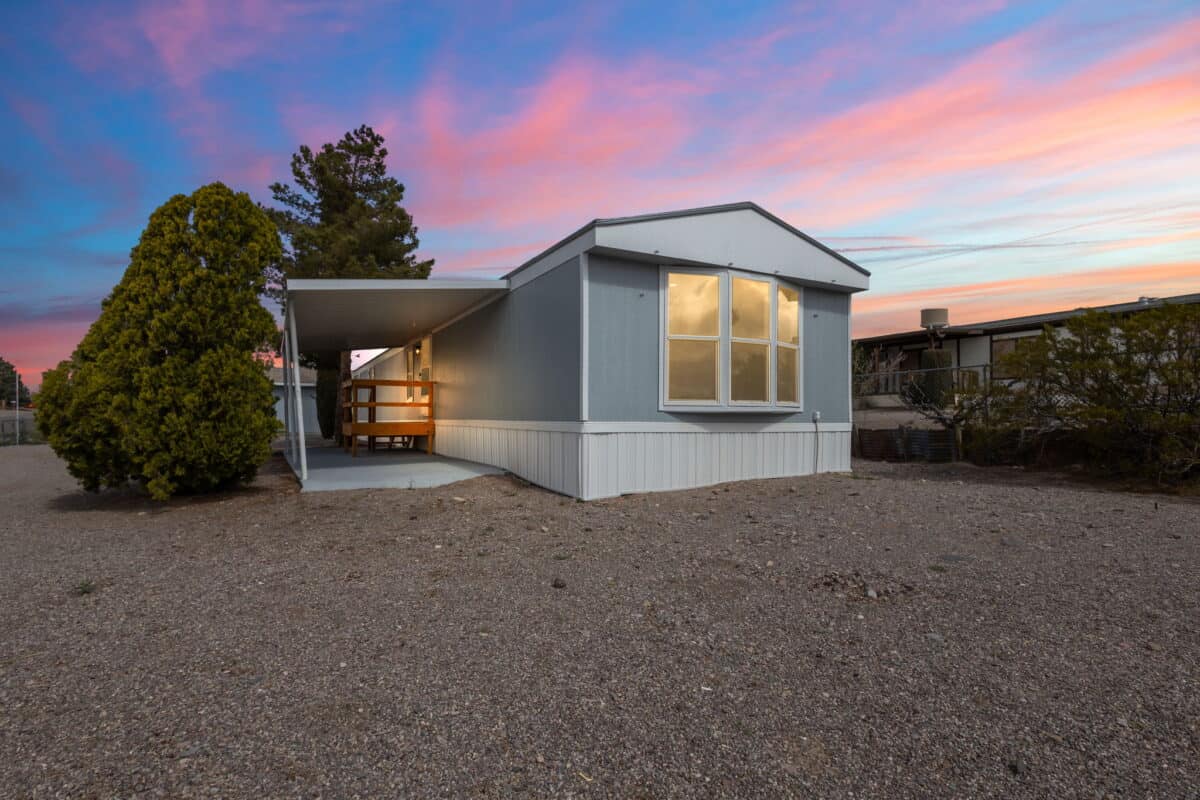 Welcome to 111 Nambe Loop in Elephant Butte, New Mexico. This updated 3-bedroom, 2-bathroom singlewide manufactured home is designed for comfort and style. Situated on a spacious corner lot (155×83) with two entrances, it’s perfect for a weekend getaway or vacation home with easy access to Elephant Butte Lake. The home features a new HVAC system for year-round comfort. The large detached garage doubles as a workshop, offering ample space for storing your jet skis, ATVs, and more. Inside, you’ll find new flooring, fresh paint, and modern updates throughout. The bright and welcoming living room is filled with natural light from oversized windows, while the kitchen provides plenty of counter space for all your needs. Both bathrooms have been updated, including the spacious master suite with a private bath and a large walk-in closet. This home is close to Sierra County’s top attractions, including Elephant Butte Lake, natural hot springs, and Sierra Del Rio Golf Course. Schedule your private showing today!
